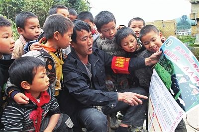 生態(tài)護(hù)林員向孩子宣傳森林防火知識