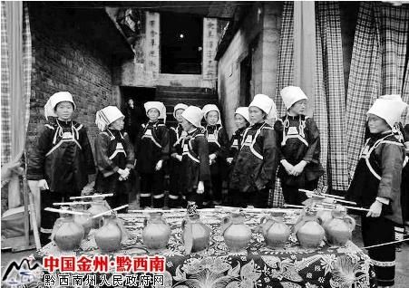 ——禮俗歌。內(nèi)容豐富多彩,節(jié)日或喜慶之日,主客于席上互相吟唱,以抒情懷。以席局《酒歌》為例??煞帧秵柧聘琛?、《謝酒歌》、《敬酒歌》等。這些歌,無一不表現(xiàn)出布依族的謙遜、熱情、直爽、好客的美德。禮俗歌還包括敬老人歌、贊媳婦歌、進(jìn)寨歌、出寨歌、宵夜歌等。這些歌無不反映出布依族尊老愛幼的傳統(tǒng)美德。特別值得一提的是布依族青年男女經(jīng)過“浪哨“擇愛后,《問媒歌》、《問八字歌》、《說親歌》、《打親家歌》等就詳盡記述了成親過程,很有研究價值。接下來還有《接親歌》、《送親歌》、《擺酒歌》等描述主客的喜悅心情和結(jié)親的歡樂氣氛。