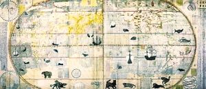 李之藻年輕時(shí)就對(duì)實(shí)學(xué)頗感興趣,曾自行繪制過(guò)明朝兩京十三省的地圖。見到利瑪竇用西法繪制的世界地圖后,李之藻敏感地意識(shí)到,這個(gè)地圖的繪制方法與中國(guó)傳統(tǒng)的“計(jì)里畫方”方法不同,是“取天文以準(zhǔn)地度”,用經(jīng)緯度確定地理方位。對(duì)利瑪竇的學(xué)問(wèn)一見而傾心的李之藻,每天都要到利瑪竇的公寓學(xué)習(xí)地理、天文知識(shí),每次都要花上四五個(gè)小時(shí)。1602年,李之藻與利瑪竇結(jié)合中西繪圖技術(shù),合作繪制了一版世界地圖《坤輿萬(wàn)國(guó)全圖》,這幅地圖改變了當(dāng)時(shí)通行的將歐洲居于地圖中央的西方繪圖格局,把子午線向西移動(dòng)170度,從而使東亞的中國(guó)居于地圖的中央,并且全圖標(biāo)上了詳細(xì)的漢字標(biāo)識(shí),這是中國(guó)最早的世界地圖。