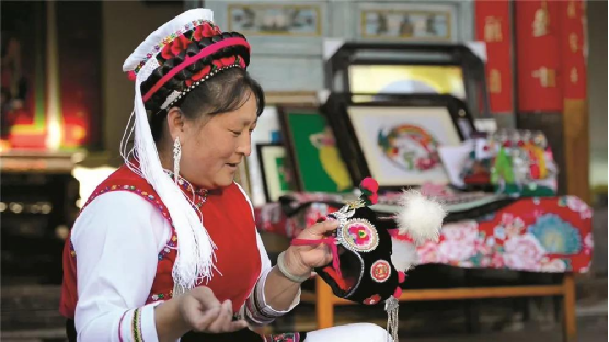 白族群眾用自己的勤勞雙手和一針一線,穿引著對美好生活的熱愛和向往,也為他們的服飾增添了寶貴的文化和藝術(shù)價(jià)值。