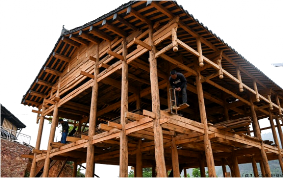 革里村的壯民族傳統(tǒng)文化與古村落相得益彰,干欄民居建筑是構(gòu)建同體族群和諧友好的象征和標(biāo)志。但是隨著社會的發(fā)展以及群眾生活水平的提高,如今,革里村越來越多的壯族群眾住進(jìn)了鋼筋混凝土樓房,干欄式建筑已越來越少,那些被歲月打磨過的印記,都成了最美的鄉(xiāng)愁。