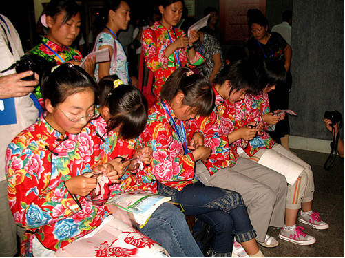 內(nèi)蒙古和林格爾剪紙是中國(guó)北方剪紙最具代表性的剪紙文化遺存之一,是由世代生活在和林格爾地區(qū)的農(nóng)牧民勞動(dòng)?jì)D女為主體創(chuàng)造的,經(jīng)過(guò)代代傳承發(fā)展,成為承載本土民族文化基因的重要的非物質(zhì)文化。二十世紀(jì)七、八十年代以來(lái),隨著經(jīng)濟(jì)社會(huì)向工業(yè)文明的急速轉(zhuǎn)型,人們的生產(chǎn)、生活方式和觀念發(fā)生了重大轉(zhuǎn)變,和林格爾剪紙面臨消亡的境地。老一輩和林格爾民間剪紙傳承人大都生活窘困,有許多已相繼辭世,她們長(zhǎng)達(dá)七、八十年藝術(shù)實(shí)踐所形成的這一古老文化傳承也因此面臨人亡藝絕,而年輕一代剪紙隊(duì)伍又尚未形成,和林格爾剪紙的發(fā)展出現(xiàn)了青黃不接的瀕危狀況。帶著全社會(huì)的關(guān)注,1998年7月10日,在時(shí)任和林格爾縣委宣傳部長(zhǎng)姚子明同志的支持下,和林格爾縣成立了內(nèi)蒙古自治區(qū)第一個(gè)旗縣剪紙學(xué)術(shù)組織——和林格爾剪紙學(xué)會(huì)。和林格爾剪紙學(xué)會(huì)的成立,是和林格爾剪紙文化事業(yè)發(fā)展的一個(gè)里程碑和轉(zhuǎn)折點(diǎn)。多年來(lái),和林格爾剪紙學(xué)會(huì)克服困難,深入搶救、發(fā)掘、整理和保護(hù)了縣境一大批珍貴的原生態(tài)剪紙遺存和老一輩剪紙傳承人。從1994年到2010年,共已累計(jì)搶救、發(fā)現(xiàn)珍貴的原生態(tài)和林格爾剪紙七萬(wàn)余幅,發(fā)現(xiàn)和保護(hù)老一輩剪紙傳承人2600余人,其中有140余名70歲以上的老一輩剪紙傳承人,學(xué)會(huì)做為重點(diǎn)搶救、考察對(duì)象而開(kāi)展了全年跟蹤式搶救、保護(hù)和記錄。和林格爾剪紙學(xué)會(huì)對(duì)已發(fā)現(xiàn)的老中年剪紙傳承人給予物質(zhì)獎(jiǎng)勵(lì)和精神關(guān)懷,激活了人們對(duì)于剪紙傳承的積極性和創(chuàng)作熱情,以農(nóng)村婦女為主體的傳承群體又重新拿起剪刀,開(kāi)始了剪紙的傳承和傳播。多年來(lái),和林格爾剪紙學(xué)會(huì)在段建珺會(huì)長(zhǎng)的帶領(lǐng)下,以“讓老大娘們重新拿起剪刀,讓年輕一代傳承剪紙”為宗旨,積極開(kāi)展各類剪紙活動(dòng),努力探索剪紙?jiān)谛滦蝿?shì)下的教育傳承和發(fā)展工作,涌現(xiàn)出以張花女、段建珺等為代表人物的一大批才華橫溢,在國(guó)內(nèi)外有影響的杰出剪紙傳承人和經(jīng)典剪紙作品。百歲剪紙大師張花女出生于清代光緒年末年,剪紙學(xué)會(huì)發(fā)現(xiàn)她時(shí),老人已是96歲高齡。在學(xué)會(huì)的幫助下,她重新拿起剪刀,傳承和創(chuàng)作了大量剪紙,堪稱珍品。張花女的作品,將剪和紙的特性發(fā)揮到了幾盡完美的境界,圓潤(rùn)而不浮華,凝重而不果板,簡(jiǎn)約而不單簿,通俗而不失典雅。她剪的《魚(yú)龍變化》、《蒙人進(jìn)城》、《碾場(chǎng)》等作品,反映了遠(yuǎn)古時(shí)期仰韶文化與紅山文化、中原文明與草原文明在該區(qū)域碰撞、交流、融合的歷史遺存,具有很高的藝術(shù)考古價(jià)值。在長(zhǎng)達(dá)一個(gè)多世紀(jì)生命的最后幾年中,張花女用剪刀和紅紙創(chuàng)造了一個(gè)當(dāng)代中國(guó)剪紙的神話。