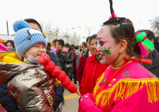踩高蹺、秧歌、舞獅、腦閣、天倉舞、二人臺(tái).....一個(gè)個(gè)精彩紛呈又獨(dú)具特色的民間傳統(tǒng)表演吸引著十里八鄉(xiāng)的村民和慕名而來的市民。大家或跟著哼唱著民間小曲,或拿出手機(jī)拍攝精彩演出,一個(gè)個(gè)寫滿了幸福的笑臉在討思浩村廣場(chǎng)競(jìng)相綻放。