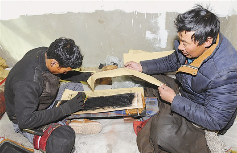 用傳統(tǒng)手工藝印刷經(jīng)書。