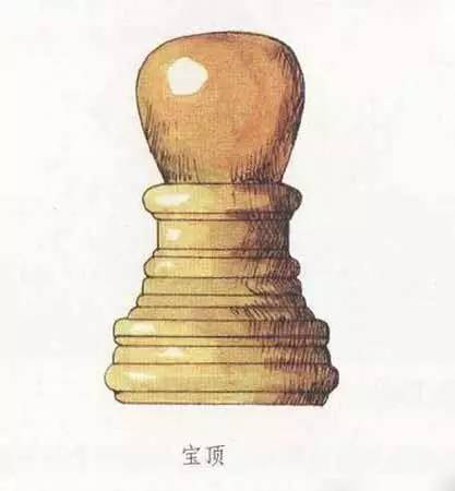在建筑物的頂部中心位置,尤其是攢尖式屋頂?shù)捻敿馓帲⒂幸粋€(gè)圓形或近似圓形之類的裝飾,它被稱為寶頂。在一些等級(jí)較高的建筑中,或者確切地說(shuō),在皇家建筑中,寶頂大多為銅質(zhì)鎏金材料制成,光彩奪目。