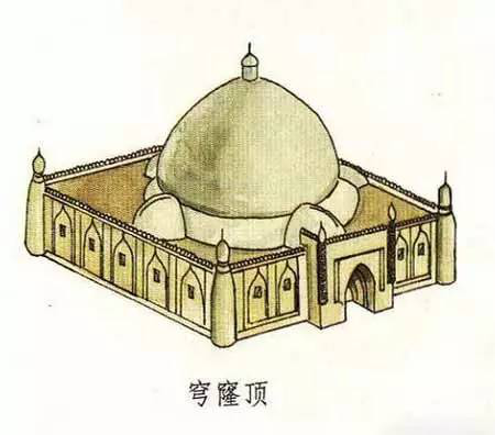 穹窿本身指天空,也形容如天空般中間高、四周下垂的樣子,同時(shí)也泛指高成拱形的建筑形式。穹窿頂就是穹窿式的屋頂,一般從外觀來(lái)看為球形或多邊形的屋頂形式。如,伊斯蘭教清真寺中的天房,室內(nèi)頂部呈半圓形,就可以叫做穹窿頂。此外,蒙古族的蒙古包等圓頂?shù)拿窬樱部梢詺w為穹窿頂建筑一類。因此,穹窿頂也稱圓頂。