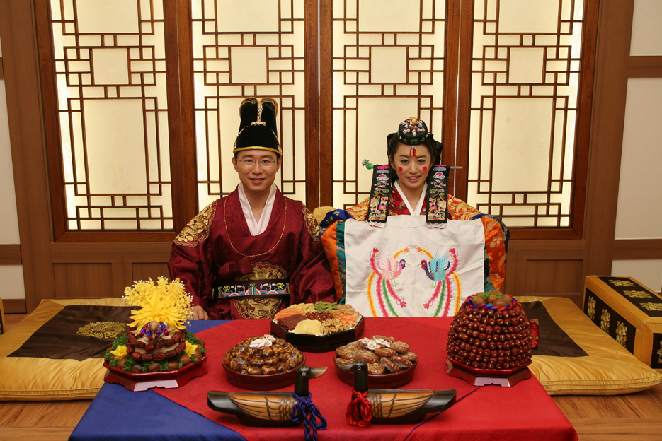 在過去,朝鮮族婚俗沿用中國古代的六禮習俗,非常傳統(tǒng)復雜,禮儀繁多?,F(xiàn)如今朝鮮族人民的婚俗雖然受到時代變遷的影響,進行了一定的簡化,但是整體流程和習俗仍保留了朝鮮族特有的特點。從婚前、結婚到婚后都有著特定的程式,主要有納彩、納幣和迎親3個程序,在這些程序中又貫穿著多種禮儀。