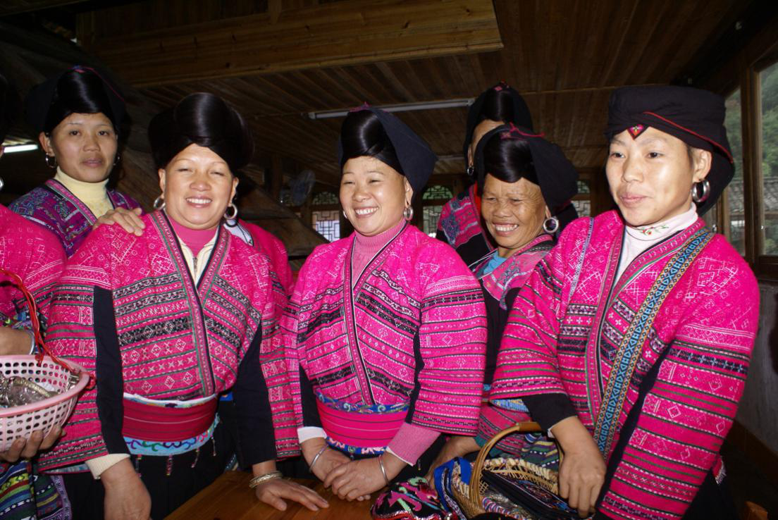 瑤族因生產(chǎn)方式、居住和服飾等方面的不同特點而有多種自稱和他稱?,幾遄苑Q為“勉”、“金門”、“布努”、“炳多優(yōu)”、“黑尤蒙”、“拉珈”等。他稱有“盤瑤”、“山子瑤”、“頂板瑤”、“花籃瑤”、“過山瑤”、“白褲瑤”、“紅瑤”、“藍靛瑤”、“八排瑤”、“平地瑤”、“坳瑤”等。