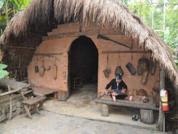 船型屋長(zhǎng)而闊,茅檐低矮,這樣的風(fēng)格有利于防風(fēng)防雨。房子分為前后兩節(jié),門(mén)向兩端開(kāi),茅草屋中間立三根高大的柱子,黎語(yǔ)叫“戈額”,“戈額”象征男人,兩邊立6根矮的柱子,黎語(yǔ)叫“戈定”,“戈定”象征女人,即一個(gè)家是由男人和女人組成。墻體用泥土筑成,屋形狹長(zhǎng)、屋檐低矮。大多數(shù)的船形屋長(zhǎng)14.7米,寬6米,屋高3.2米。房子分為前后兩節(jié)。四壁用樹(shù)枝扎成方格形,再用用稻草和泥糊墻。前后兩個(gè)門(mén)用木板制成,門(mén)向兩端開(kāi)。
