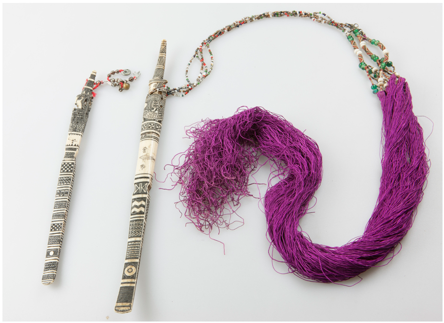 相比骨簪作為物件的本身,黎族待物的方式以及生活本身,更體現(xiàn)其本身的日用之道。作為一門(mén)集祖先崇拜、工藝美學(xué)、力量與想象結(jié)合的技藝,不只體現(xiàn)人與物的功能性關(guān)系,更在其中牽涉“我”與自然、與他人、與社會(huì)之間更為復(fù)雜而有趣的關(guān)聯(lián)。