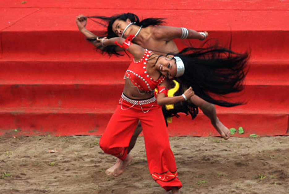 西南邊陲云南省臨滄市佤族藝術(shù)家表演的佤族舞蹈 引自中國經(jīng)濟文化網(wǎng)