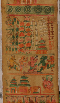 納西族東巴教的長幅布卷畫,通稱為“神路圖”,它是東巴教繪畫中的巨作。此類畫一般長10-20米,寬1尺...