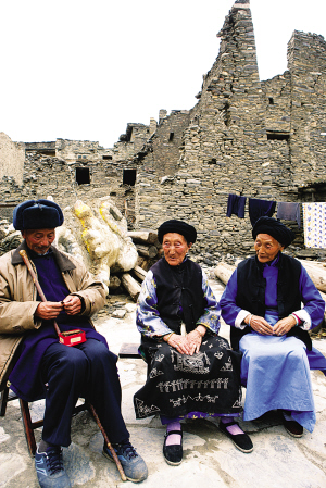 碉樓雖倒,羌族永在。震后的桃坪寨,老人的表情還是如此安詳