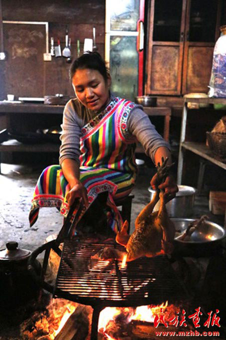 火燒獨(dú)龍雞是獨(dú)龍族人逢年過節(jié)團(tuán)圓飯不可缺少的一道特色菜(余金成 攝影)