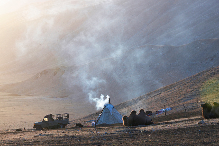 每日兩餐或三餐,或者隨意幾片包爾茨克(用雙面鐵鍋烤制的大餅)喝茶,無論來客長(zhǎng)幼或身份,第一碗茶或第一碗飯一定不是給客人的,而是給主人的,這與我通常熟悉的新疆其他草原民族不一樣。我?guī)状慰戳伺聿乓患业谋砬?,沒有誰不舒服,唯有我一下子不適應(yīng)。實(shí)際上,經(jīng)過漫長(zhǎng)的戰(zhàn)爭(zhēng)年代,喝茶喝酒,蒙古人都在用這種方式表示對(duì)客人最大的敬意與誠意。自家嘗試之后再奉獻(xiàn)客人,即使有意外,客人也可無憂,由此形成傳統(tǒng)。