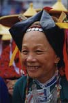 惠東女服飾文化源遠流長,其形成、發(fā)展過程一直是中外人類學、民俗學專家關注的課題。其來源有種種傳說,目前尚無定論。據(jù)史料記載,清代中后期,惠東婦女上穿黑色或紫色長袖挖襟衫,下穿黑色大折褲。衣長、胸、腰背寬闊,下沿稍呈弧形外展,與清代流行的“大夫衫”(長式挖襟衫)類似。不同的是袖口偏窄,袖子接長,故名“接袖衫”又名“卷袖衫”接袖的用意十分有趣,為的是讓新娘入洞房時提起長袖以遮掩一臉羞紅;過了3日,才在長袖一半處翻卷逢住固定。到了清未“接袖衫”各部分略為收縮,衣沿弧度加長,臂圍寬度加闊并向外彎展,腰圍處的中式紐攀減少,兩個連在一起,袖口繞藍布邊。領圍上刺繡圖案由簡變繁,領根下方形色布改為三角形。胸、背中線兩側綴做兩塊方形黑色、深褐色綢布,其四邊各鑲接一塊三色形色布,改稱“綴做衫”。褲子為“大折褲”又名“大筒褲”,俗稱“漢裝褲”。褲一般用黑色布,也有用藍色的。褲腳寬約1.2尺,褲頭約2尺,縫一道5寸的藍色布邊。其樣式從清代中后期至今沒有多大變化,惟質料由舊時用粗布,今天改為通用黑綢布?;輺|女服飾,歷來重視腰以上部分,特別以頭飾最為突出,花樣繁多,不同場合、不同年齡的頭飾有明顯區(qū)別。