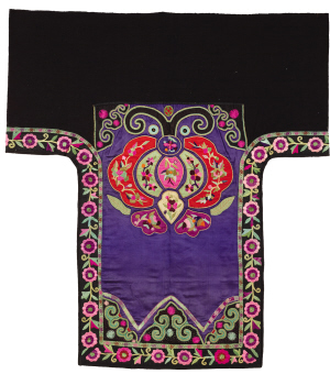 北京服裝學院民族服飾博物館藏貴州雷山地區(qū)苗族花蝶紋貼補刺繡背扇片。