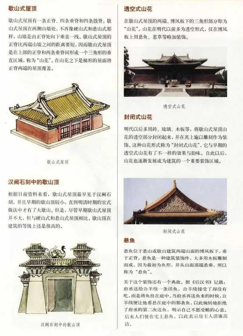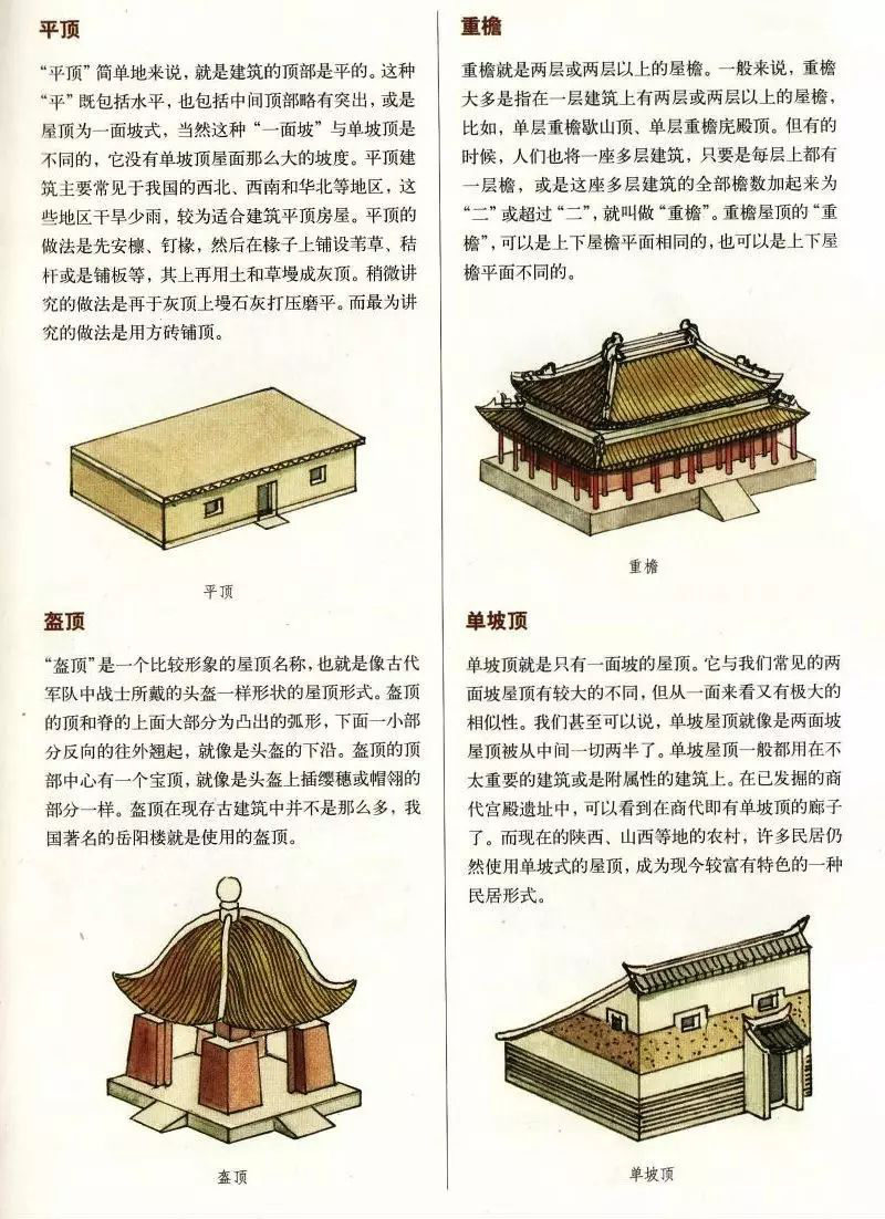 中國古代建筑屋頂不僅樣式多,而且組成部分也有好幾種,主要由屋面、屋脊等部分組成,而且有嚴(yán)格的等級制度。