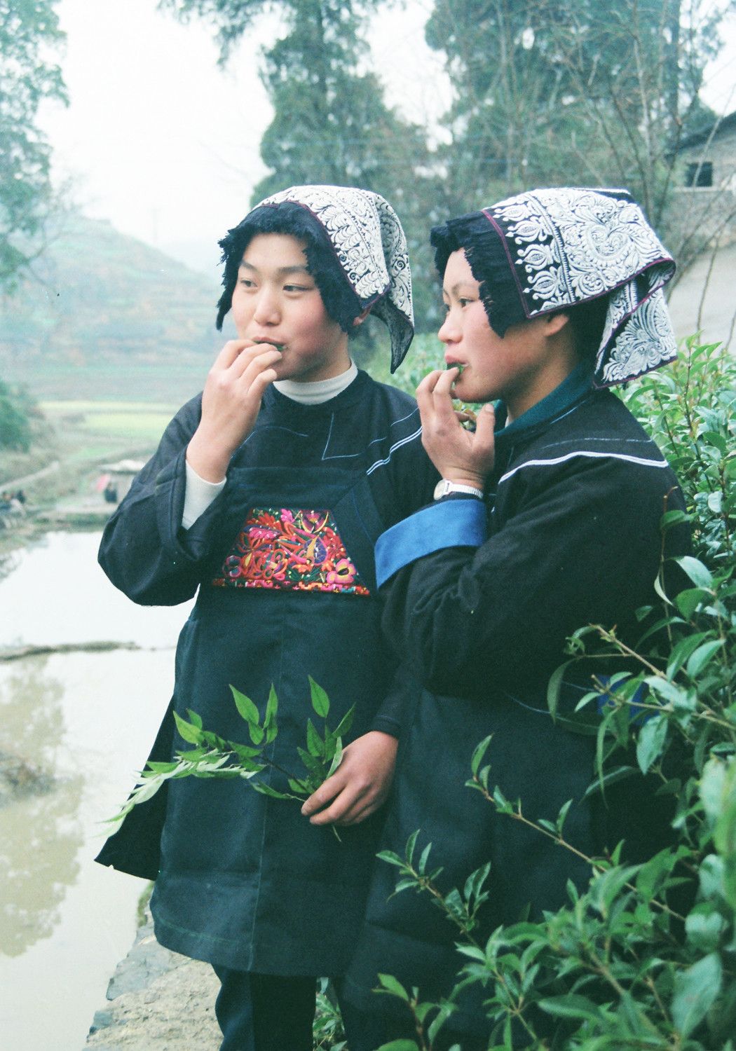 瑤族婚戀,極具特色。逢夜深人靜,在河畔或寨腳,對對情人,衣服蒙頭,談情說愛。河壩瑤族規(guī)定每年農(nóng)歷正月初二為統(tǒng)一結婚佳期,其余時間不得迎親嫁女。初一凌晨,男家聘兩男一女作引親人,提馬燈,帶火把,帶一把紅紙傘和抬禮物到女家接親。女家不辦酒,只請女兒姨娘陪送。撐紅傘的新娘與引親人和姨娘一道步行到男家。新娘進男家大門時,接過“當家”錢和米,然后由兩名姑娘領新娘和姨娘入洞房。男家歡慶三天,新娘臥床不起,回避前來賀婚的男女青年。三天后,新娘起床佯裝挑水,將水桶丟在井邊,轉回娘家。待農(nóng)歷二月初二的統(tǒng)一佳期,才接新媳婦回男家。