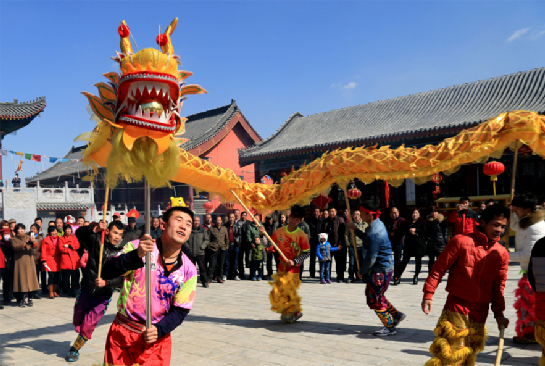 屆時(shí)在廟里還要敬龍牌及各路神仙,并且唱大戲、逛九曲、壘旺火,家家戶戶請(qǐng)親待客、邀朋會(huì)友,共享“二月二”盛會(huì)的歡樂(lè),一同祈求“龍王爺”保佑五谷豐登、人丁興旺,流露出人們對(duì)龍的無(wú)限崇敬和虔誠(chéng)的信仰。