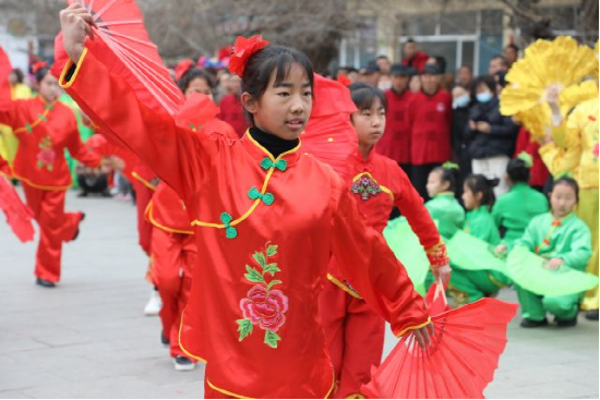 在[資2]讓人流連忘返的民俗演出中,最引人矚目的便是來(lái)自討思浩小學(xué)的學(xué)生們帶來(lái)的自“天倉(cāng)節(jié)”祈福儀式演變而成的“天倉(cāng)舞”表演,孩子們有板有眼的舞蹈動(dòng)作完全不遜色于專業(yè)的演出隊(duì)伍,不僅將討思浩特有的傳統(tǒng)民俗淋漓盡致的展現(xiàn)出來(lái),更是對(duì)西北農(nóng)耕文化的有力傳承。據(jù)介紹,2018年12月開(kāi)始,村委會(huì)聯(lián)合討思浩小學(xué)于每周五下午開(kāi)設(shè)了民俗文化特色課,天倉(cāng)舞傳習(xí)、民俗歷史講座等內(nèi)容的設(shè)置,讓孩子們對(duì)家鄉(xiāng)的歷史文化更加了解,增添了對(duì)家鄉(xiāng)的認(rèn)同感,也讓保留了幾百年的民俗文化得到了傳承。