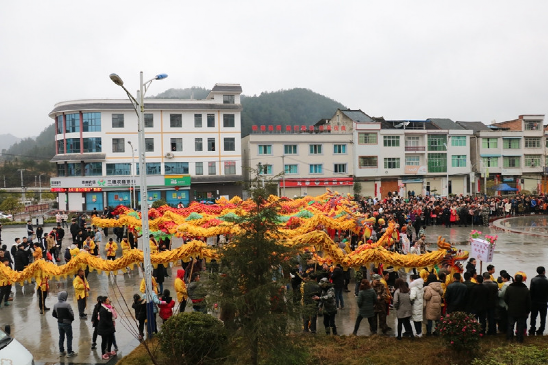 2019年2月16日農(nóng)歷正月十二是瓦寨鎮(zhèn)傳統(tǒng)大型集會活動日,舞龍為主要活動之一。午飯后,來自全縣各地的舞龍舞獅隊、花燈隊陸續(xù)到瓦寨政府廣場集結(jié),并在廣場右側(cè)有序排隊等待,各隊隊員精神抖擻、神采飛揚、迫不及待。前來參觀元宵舞龍的群眾和游客也不斷涌向廣場,大街小巷行人猶如潮涌,吆喝聲、歡笑聲、鑼鼓聲連綿不斷……下午五時許,活動在瓦寨鎮(zhèn)政府廣場正式開始,先是由鎮(zhèn)領(lǐng)導(dǎo)對脫貧攻堅各項惠民政策及5年來瓦寨取得的攻堅戰(zhàn)績進行宣講,宣講慳鏘有力、扣人心弦,特別是5年來瓦寨取得的攻堅戰(zhàn)績,一致得到人民群眾好評和認可。隨后,舞龍、舞獅、花燈表演紛紛上演,只見黃龍時而上下翻騰,時而昂首擺尾,雄獅時而就地打滾,時而賣萌撒嬌,樣子憨態(tài)可掬,花燈表演幽默滑稽,在前行中跑出各種套路,起伏波動、生動活潑,吸引了所有人的目光,贏得了陣陣喝彩……