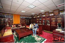 果洛古籍保護中心的研究人員閱讀《格薩爾》相關(guān)資料