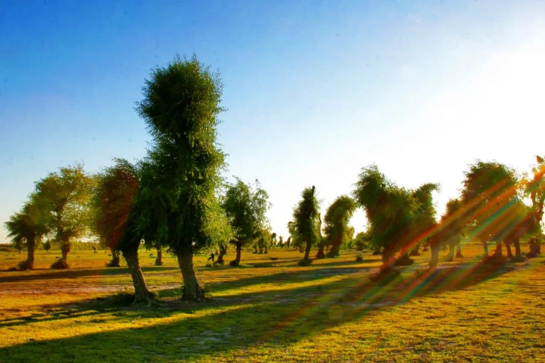 青蔥一段。是那些仙柳,年年綠遍。親瞻始信天工巧,看神態(tài)虬然,巨身如蜿。雕成寂寞,慣倚風沙思念。放眼,在芳陌之間,碧河之畔。癡懷不共斜陽挽,有歸鳥纏綿,與它相戀。根生大漠,情系這般遼遠。