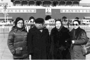 1988年,艾克拜爾(左)和夫人景宜(右)與父母在天安門(mén)前合影。