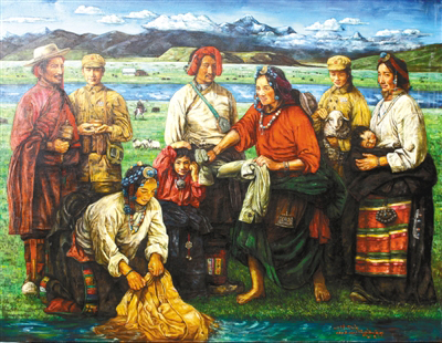 “以前畫畫時(shí),對(duì)自己的最高要求就是畫得要逼真,把油畫畫得像一幅放大了的照片,而現(xiàn)在關(guān)注的是如何畫出能體現(xiàn)當(dāng)代的畫面。西藏的美是無窮無盡的,我就想用繪畫的方式窮盡一生去追求,展現(xiàn)大美西藏?!比缃竦乃髀?,淡去了初出茅廬時(shí)一味追求畫面質(zhì)感的匠氣,多了些許內(nèi)心對(duì)西藏這片熱土深層次的思考。他筆下的西藏是一片充滿生機(jī)的土地,濃墨重彩之間,既有對(duì)傳統(tǒng)和過往年華的回望和懷念,又在仿若不經(jīng)意間透過一個(gè)眼神、一抹色彩、一個(gè)小物件盡情詮釋活力和希望。