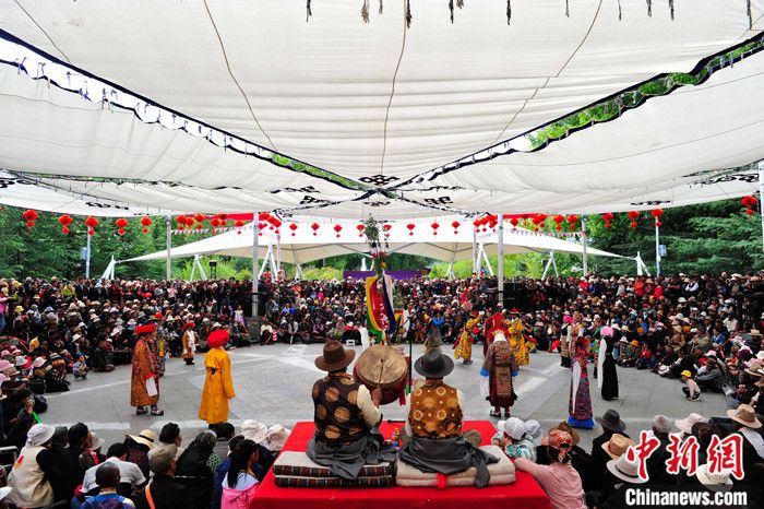 資料圖為藏戲《蘇吉尼瑪》在拉薩市宗角祿康公園上演。 記者 貢嘎來松 攝