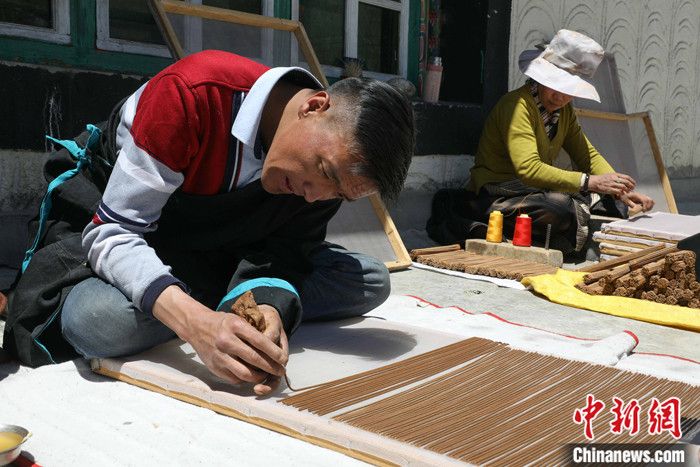 資料圖為西藏拉薩尼木縣吞巴鄉(xiāng)手藝人在自家手工制作藏香。 記者 貢嘎來松 攝