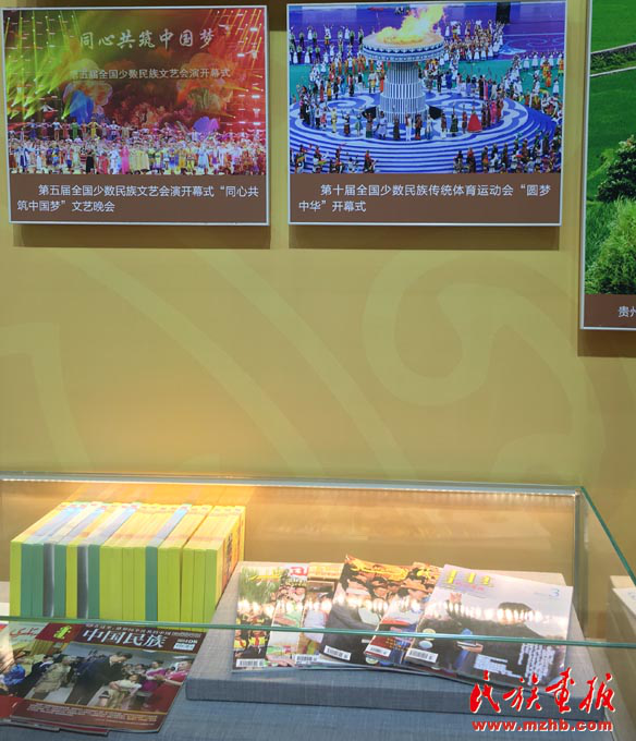 2017年,在“砥礪奮進(jìn)的五年”大型成就展上展出的《民族畫(huà)報(bào)》六種文版期刊以及《民族畫(huà)報(bào)》記者拍攝的反映民族工作成就的圖片