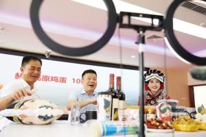接下來出場的是葡萄酒,這是新推出的產(chǎn)品。天葡莊園田園綜合體項(xiàng)目的產(chǎn)業(yè)園區(qū)項(xiàng)目招商和落地工作,我是從頭到尾都參與的。作為中央統(tǒng)戰(zhàn)部引進(jìn)的幫扶項(xiàng)目,這個(gè)坐落在六曲河鎮(zhèn)的葡萄園區(qū),占地面積近200畝,如今種有夏黑、旭旺、陽光玫瑰等葡萄品種。