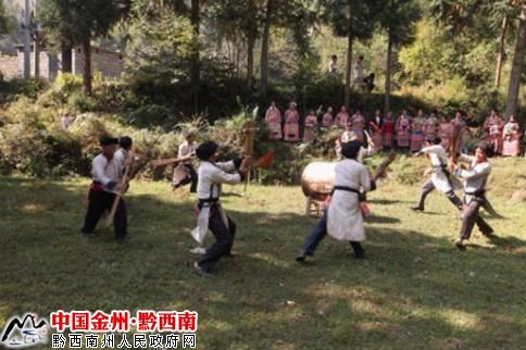 苗族“惹捱德亙”(也稱為:蘆笙棒舞)是一種依存于“蒙灑”苗人(苗族川滇黔方言區(qū)中的一支苗族)喪祭儀式中的傳統(tǒng)祭祀性舞蹈。這種舞蹈主要流傳在“蒙灑”苗人聚居的村寨中,是一種表現(xiàn)比較豐富、歷史意蘊(yùn)深厚、特色鮮明的舞蹈。