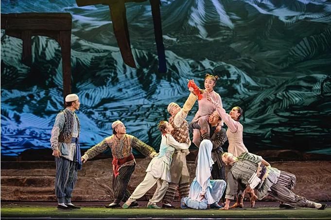 同時,作為以“花兒音樂”為主的音樂劇,該劇在發(fā)掘和弘揚(yáng)民族音樂的同時,充分發(fā)揮現(xiàn)代交響樂的音樂張力、表現(xiàn)力和震撼力,賦予音樂劇以現(xiàn)代節(jié)奏,使得全劇顯示出波瀾起伏而張弛有度、潤澤細(xì)微而又縱橫捭闔的大劇格局。在舞蹈方面,該劇既能讓觀眾觀賞到柔美的迎客舞、剛勁的踏腳舞,又可見狂飆突進(jìn)式的現(xiàn)代舞蹈,樂與舞的結(jié)合使得該劇更具可視性與感染力。