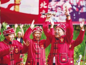 巖翁(右一)手持習近平總書記回信歡呼。新華社記者 江文耀攝