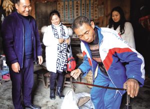 在村里修復(fù)舊屋的趙貢彩接到游客電話,馬不停蹄地趕回家中,自家手工制作的苕粉成了游客心心念念的香餑餑。拿出早已生銹的秤桿,一袋袋苕粉被游客搶著購(gòu)買(mǎi)?!岸际橇糁约页缘模南胫苜u(mài)出去喲?!毙χf(shuō)罷,趙貢彩拿出手機(jī),微信一掃,錢(qián)款立即到賬。