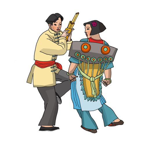 維吾爾族(獨輪車):維吾爾族有7214431人,主要聚居在新疆維吾爾族自治區(qū)。維吾爾族體育項目主要有摔跤、走繩(高架繩,維吾爾語稱為達瓦孜)、打尕尕 (打木棒)、較量、滑冰等?!暗鹧颉北荣愂蔷S吾爾族人民酷愛的一項傳統(tǒng)民間體育運動。