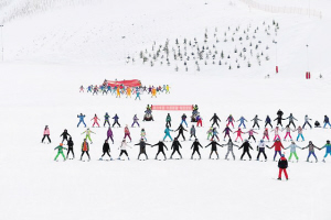 人們在阿勒泰市將軍山滑雪場參加慶祝活動。