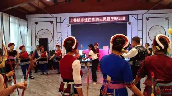 傳統(tǒng)文化時時學,白族舞蹈代代傳。小小的霸王鞭看似簡單,里面卻包含了白族人民田間勞作的智慧。用自己的努力,言傳身教地教授霸王鞭,這愚公移山般的精神也是傳承人的智慧?!敖裉煜挛?點,我還要去江尾一趟,教他們的繞三靈團隊跳霸王鞭”,何松康說。
