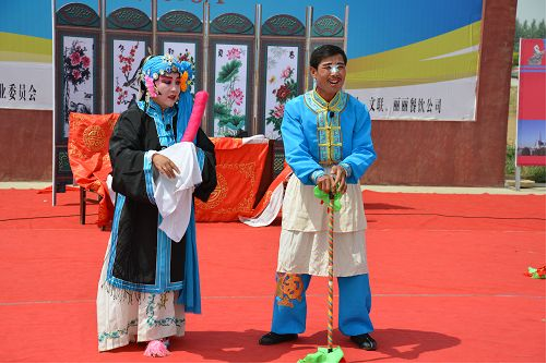 達拉特道情富有濃郁的地方色彩,生、旦、丑等行當齊全,包括“唱、念、做、打”四功,不過由于它演唱內容的關系,以“唱、念、做”三功為主。音樂體制主要為曲牌連綴體,同時吸收了地方小戲與北路梆子的音樂元素,又兼有地方大戲的部分唱腔曲調,演唱方式以坐唱為主,樂器伴奏分為文場和武場,音樂婉轉纏綿、節(jié)奏明快,曲調開朗而流暢,唱白多運用地方方言,藝術風格柔美而抒情,充盈了濃郁的鄉(xiāng)土生活氣息。
