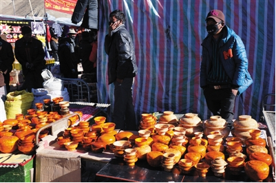 雅礱物資文化交流會上有許多賣木碗的商戶。