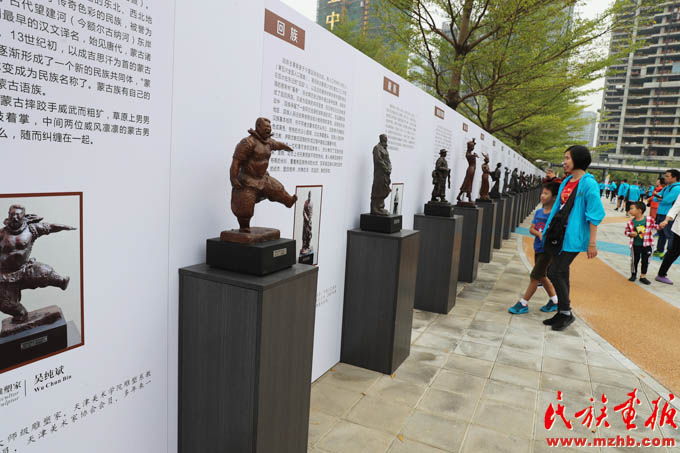 深圳現(xiàn)有少數(shù)民族人口近100萬,“來了就是深圳人”的話語深入人心。這是2018年11月在深圳舉辦的“行走的雕塑”活動中的少數(shù)民族雕塑展(和勇 攝影)