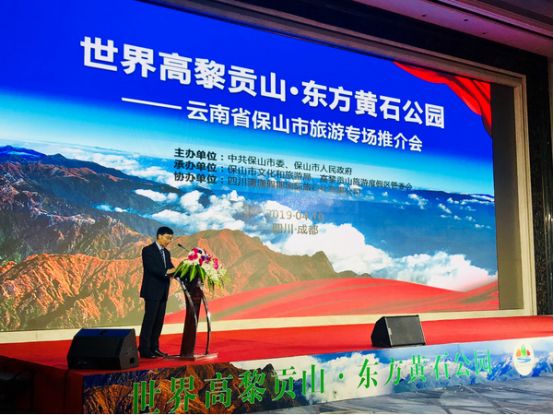 2019年4月10日,“世界高黎貢山·東方黃石公園”保山旅游專場(chǎng)推介會(huì)在成都市召開。成都和保山兩地旅游界、航空界、新聞界的嘉賓300多人出席推介會(huì)。保山市人民政府副市長(zhǎng)宋光興、成都市人民政府副秘書長(zhǎng)唐章昭出席推介會(huì)并致辭。宋光興副市長(zhǎng)指出,成都素有“天府之國(guó)”的美譽(yù),自然風(fēng)光雄奇險(xiǎn)秀,民族風(fēng)情多姿多彩,巴蜀文化積淀深厚,革命歷史可歌可泣,川菜享譽(yù)四方,川劇獨(dú)具魅力,旅游資源得天獨(dú)厚,是一座傳統(tǒng)與現(xiàn)代結(jié)合得最好的城市,是“一座來了就不想離開的城市”。高黎貢山作為全球生物多樣性最富集的地區(qū),有高等植物4897種,動(dòng)物2389種,垂直高差達(dá)4000多米,幾乎分布有中國(guó)除沙漠之外的所有陸地氣候類型,是國(guó)家級(jí)自然保護(hù)區(qū),是世界公認(rèn)的地球上最重要的“物種基因庫”、是具有國(guó)際重要意義的“世界生物圈保護(hù)區(qū)”,是“三江并流”世界自然遺產(chǎn)的重要組成部分。高黎貢山獨(dú)特的地質(zhì)地貌孕育了保山宜人的氣候、優(yōu)良的生態(tài)、富集的溫泉、秀美的風(fēng)光、多彩的文化和富饒的物產(chǎn),使保山成為云南新興的旅游熱點(diǎn)和宜居城市。希望通過這次旅游推介會(huì),能夠在成都、保山兩地之間架起一座便捷的橋梁,進(jìn)一步深化兩地文化旅游交流合作,共推旅游線路,共拓旅游市場(chǎng),實(shí)現(xiàn)互惠共贏。