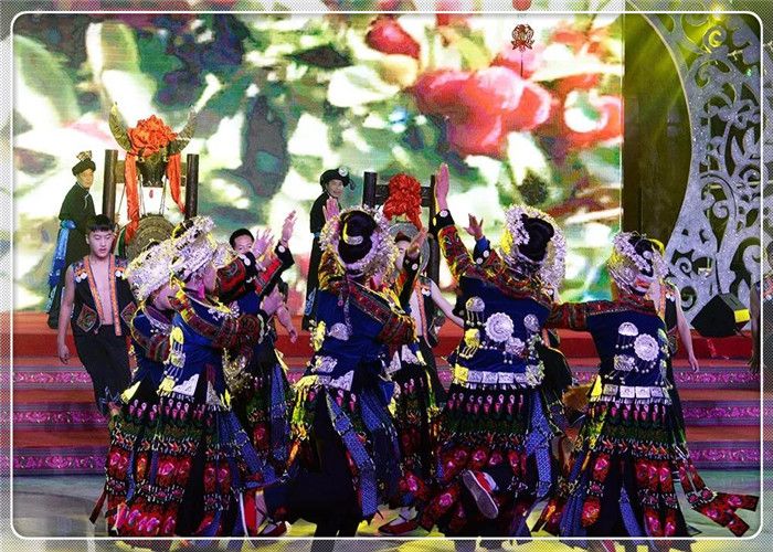 中國(guó)苗族網(wǎng)訊 2019年1月19日,由貴州省社科聯(lián)、貴州民族大學(xué)指導(dǎo),貴州省苗學(xué)會(huì)主辦,貴陽(yáng)市苗學(xué)會(huì)、六盤水市苗學(xué)會(huì)、安順市苗學(xué)會(huì)、畢節(jié)市苗學(xué)會(huì)、銅仁市苗學(xué)會(huì)、黔西南州苗學(xué)會(huì)、黔東南州苗學(xué)會(huì)、黔南州苗學(xué)會(huì)、貴安新區(qū)苗學(xué)會(huì)、多彩貴州城建設(shè)經(jīng)營(yíng)有限公司共同協(xié)辦的“迎新春-蝶韻楓彩鼓聲來(lái)”2019春節(jié)聯(lián)歡晚會(huì),在貴州省貴陽(yáng)市“多彩貴州城”展示中心隆重舉辦。貴州省9個(gè)州市及貴安新區(qū)苗族、布依族、侗族、土家族、彝族、仡佬族、水族、回族、白族、瑤族、壯族、毛南族、蒙古族、仫佬族、羌族、滿族等17個(gè)少數(shù)民族載歌載舞歌盛世,歡天喜地迎新春。 應(yīng)邀出席春晚的領(lǐng)導(dǎo)嘉賓有貴州省人大常委會(huì)原副主任、省苗學(xué)會(huì)老會(huì)長(zhǎng)楊光林,以及貴州省人大常委會(huì),貴州省社科聯(lián),貴州省民政廳,貴州省政協(xié),貴州民大,貴州省政協(xié),貴州省文化和旅游廳,貴州省總工會(huì),貴州省文聯(lián)、貴州省人大、省委宣傳部、省民政廳,民宗委,社科聯(lián),貴州省八大民族學(xué)會(huì)的相關(guān)領(lǐng)導(dǎo)等應(yīng)邀出席并觀看演出。 春晚得到了貴州省委宣傳部領(lǐng)導(dǎo)關(guān)心,省委常委、省委宣傳部慕德貴部長(zhǎng)對(duì)晚會(huì)專門作出重要批示,要求把春晚打造成一臺(tái)“思想性、藝術(shù)性、觀賞性統(tǒng)一的文藝晚會(huì),豐富春節(jié)期間群眾性精神文化生活,營(yíng)造歡樂(lè)、喜慶、團(tuán)結(jié)、祥和的節(jié)日氛圍”。 晚會(huì)緊扣“同心共筑中國(guó)夢(mèng),中華民族一家親”主題,圍繞共同團(tuán)結(jié)奮斗、共同繁榮發(fā)展主題,繼承和弘揚(yáng)中華民族優(yōu)秀傳統(tǒng)文化,積極展示貴州少數(shù)民族同胞改革開放40周年來(lái)翻天覆地的新變化,用少數(shù)民族原生態(tài)歌舞形式歌頌黨、歌頌祖國(guó)、歌頌民族大團(tuán)結(jié)。春晚節(jié)目,由貴州省各州市國(guó)家非遺保護(hù)節(jié)目、在中央春晚節(jié)目,由貴州省各州市國(guó)家非遺保護(hù)節(jié)目、在中央級(jí)、省市級(jí)比賽中獲獎(jiǎng)的各民族原生態(tài)蘆笙舞、錦雞舞、銅鼓舞、板凳舞,苗族飛歌、古歌、大歌、情歌、絕技;民族盛裝走秀;非遺文化展示等26個(gè)節(jié)目組成。 晚會(huì)由240位貴州各地苗族演員,50位苗族、布依族、侗族、仡佬族、彝族、土家族、回族等17個(gè)少數(shù)民族演員,在主持人的開場(chǎng)白介紹中,手持燈花、衣著盛裝在鼓點(diǎn)笙曲中步入會(huì)場(chǎng)。 接著,被國(guó)內(nèi)外譽(yù)為“東方迪斯科”的黔東南州臺(tái)江《反排木鼓舞》拉開笙鼓迎春的序幕,雷山國(guó)家級(jí)非遺節(jié)目《掌坳銅鼓舞》、《錦雞舞》,貴陽(yáng)市花溪區(qū)《花鼓舞》、貴安新區(qū)原生態(tài)蘆笙舞《花坡韻》、黔南州《鼓龍鼓虎-長(zhǎng)衫龍》、兒童舞蹈《跺月亮》、畢節(jié)市納雍縣蘆笙舞《滾山珠》、凱里原生態(tài)合唱《春之歌》、安順留守兒童合唱團(tuán)《又見桃花開》、金竹樂(lè)隊(duì)蘆笙組合《酒歌》、銅仁市絕技《紙上飛仙》、黔西南州《板凳舞》等,一個(gè)個(gè)節(jié)目精彩絕倫、美輪美奐,舞出少數(shù)民族同胞“美起來(lái)、笑起來(lái)、富起來(lái)、強(qiáng)起來(lái)”的精神風(fēng)貌、音容笑貌。最后,貴州省17個(gè)世居少數(shù)民族240名演員齊唱《愛我中華》,在“五十六個(gè)民族五十六朵花,五十六個(gè)兄弟姐妹是一家”的歌聲中把整臺(tái)晚會(huì)推向高潮,拉下帷幕。 此次春晚民族文化濃厚、明星歌手薈萃、演員陣容龐 此次春晚民族文化濃厚、明星歌手薈萃、演員陣容龐大、節(jié)目精彩絕倫。這些節(jié)目,涵蓋了東部方言、中部方言和西部方言各民族支系。遍及黔東南州、黔西南州、黔南州、貴陽(yáng)市、安順市、畢節(jié)市、六盤水市、銅仁市和貴安新區(qū)。老藝術(shù)家榜香、青年歌手阿幼朵、潘興周、雷艷、楊一方、阿娜丹、歐桑、楊佳茜、楊祖桃、楊思雨、楊廷勇、吳敏成、阿蕾倩、余秋陽(yáng)、阿依三姐妹、谷阿斯組合、阿依山娃組合等20多名少數(shù)民族歌星紛紛登臺(tái)獻(xiàn)藝,演員達(dá)300余人。 貴州省人大常委會(huì)原副主任、貴州省苗學(xué)會(huì)老會(huì)長(zhǎng)楊光林說(shuō),春晚的舉辦,有利于提高民族同胞的戰(zhàn)斗力、凝聚力、感召力!春晚牢牢把握了“百姓富、生態(tài)美”兩條底線,通過(guò)晚會(huì)形式,吹響了少數(shù)民族同胞在黨中央和貴州省委、省政府的堅(jiān)強(qiáng)領(lǐng)導(dǎo)下,致力于決戰(zhàn)脫貧攻堅(jiān),決勝同步小康、實(shí)現(xiàn)鄉(xiāng)村振興的號(hào)角。是號(hào)召大家參與國(guó)家實(shí)施的“鄉(xiāng)村振興、脫貧攻堅(jiān)”任務(wù),努力實(shí)現(xiàn)貴州人民2020年和全國(guó)人民同步實(shí)現(xiàn)小康及全國(guó)人民正在努力實(shí)現(xiàn)的“中國(guó)夢(mèng)”作出貢獻(xiàn)的動(dòng)員令! 晚會(huì)當(dāng)天,春晚組委會(huì)主任、貴州省苗學(xué)會(huì)常務(wù)副會(