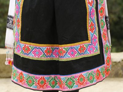苗族女子服飾花帶百褶裙-裙擺側面繡花