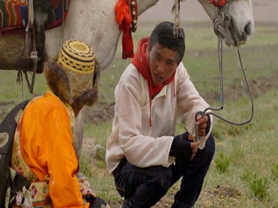 賽馬冠軍在雨中訓(xùn)練兒子的騎術(shù)