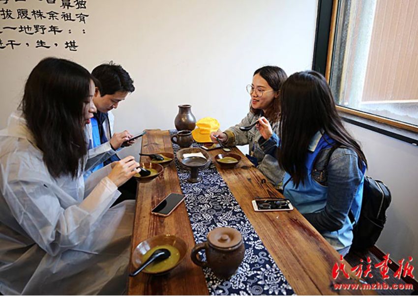 在金佛山頂,游客品嘗“金佛山咖啡”油茶